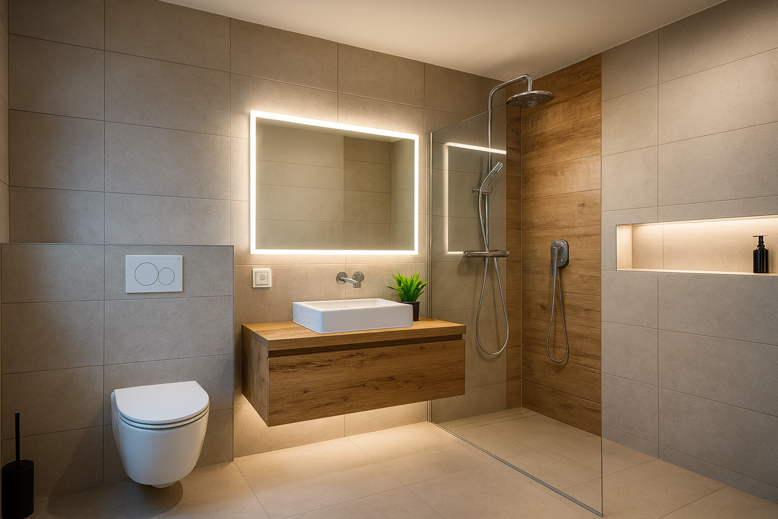 Realizovali jsme moderní koupelnu se závěsným WC a komfortním sprchovým koutem. Do podlahy jsme instalovali elektrické podlahové topení pro příjemné teplo po celý rok. Sprchový kout jsme opatřili kvalitní hydroizolací pro maximální ochranu proti vlhkosti. Celý prostor jsme doplnili pečlivě vybranými designovými prvky, které koupelně dodaly osobitý styl. Do stropu jsme zabudovali účinné odsávání pro zajištění čerstvého a zdravého vzduchu.